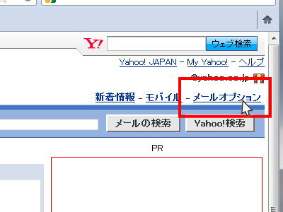 1:Yahoo!メールトップページ右上の[メールオプション]をクリックします。