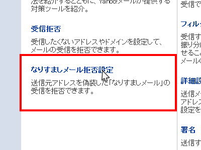 2:次に表示されるページで[なりすましメール拒否設定]をクリックします。