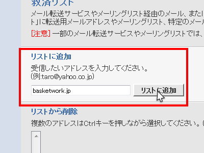 3:「リストに追加」欄に、救済したいメールアドレスか、ドメインを入力し、