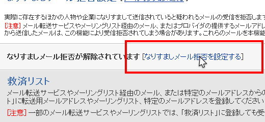 以下の画像の様に今のページの[なりすましメール拒否を設定する]リンクをクリックし、